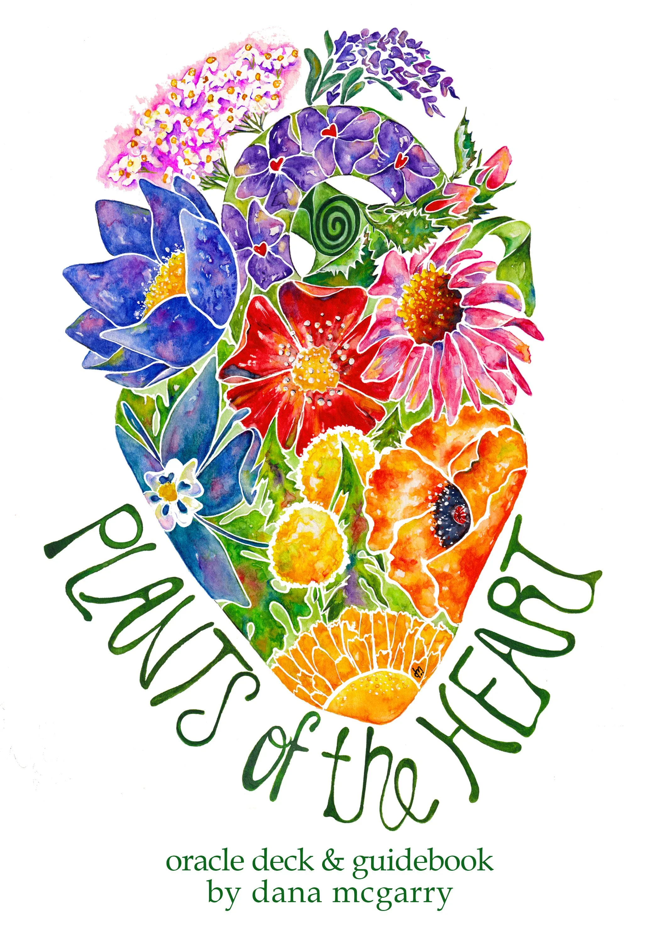 Plants of the Heart is a 44-card oracle deck and guidebook, wholly original and physically handmade. Each card is my original design created with watercolor, gouache, and ink. The guidebook includes original black and white illustrations and brief, but ornately woven, messages from the plants via my heart to yours.